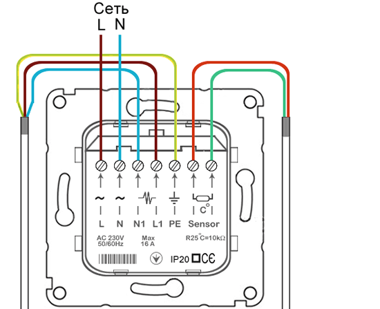Схема подключения датчика термостата к теплому полу Принцип подключения всех элементов системы к термостату и электросети один и тот же. Схема установки данного прибора достаточно проста.