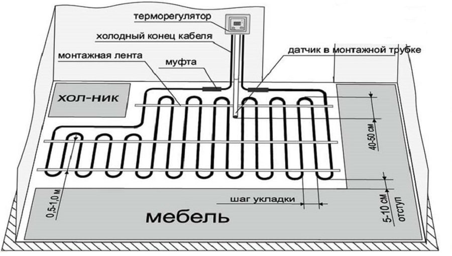Схема подключения теплого пола (монтаж греющего кабеля). Установка теплого пола своими руками